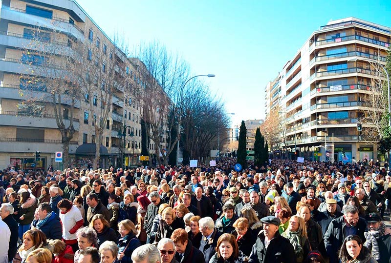 Más de 15.000 personas acudieron a la llamada de la Plataforma para la Defensa de la Sanidad Pública salmantina, para exigir medidas que sirvan para paliar el deterioro de la sanidad pública en el Complejo Asistencial de Salamanca y frenar el caos en el que se ha convertido el Hospital.