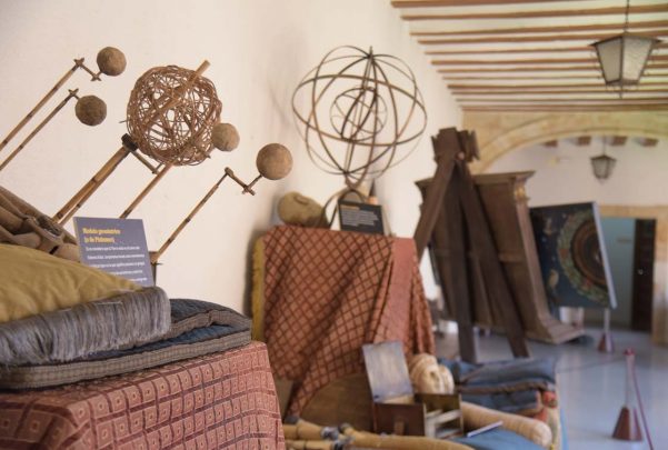 La exposición está formada por paneles explicativos, muebles interactivos y diversas piezas del material de attrezzo utilizadas en la película Ágora, dirigida por Alejandro Amenábar, y que relata la vida de Hipatia de Alejandría, astrónoma, matemática y filósofa nacida en el siglo IV. Este atrezzo incluye diversas estatuas y reproducciones de instrumentos astronómicos como sextantes, cuadrantes o una esfera armilar, entre otros. ‘Con A de astrónomas’ repasa diversos temas de esta ciencia, como el Sol, el Sistema Solar, la formación y evolución estelar, las galaxias, la cosmología y la instrumentación astronómica, y, además, recoge la presencia de astrónomas en la cultura (literatura, cine, etc.) y la relación entre su trabajo y los momentos más importantes en la historia de la lucha por la igualdad de género.
