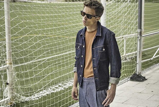 En el reportaje, posa con «prendas de temporada» de diferentes marcas conocidas. Cazadora vaquera, gafas de sol, pose haciéndose el interesante.