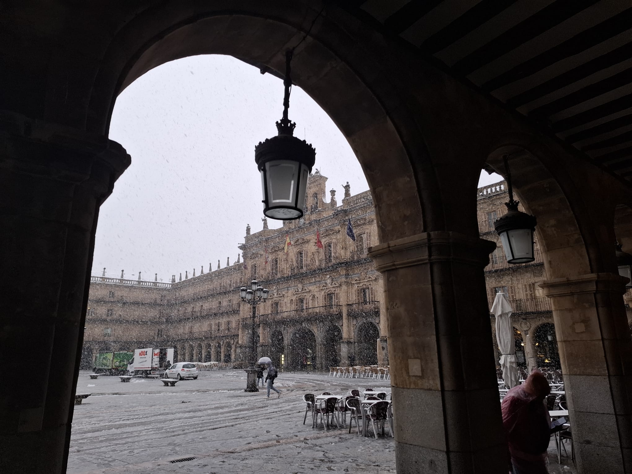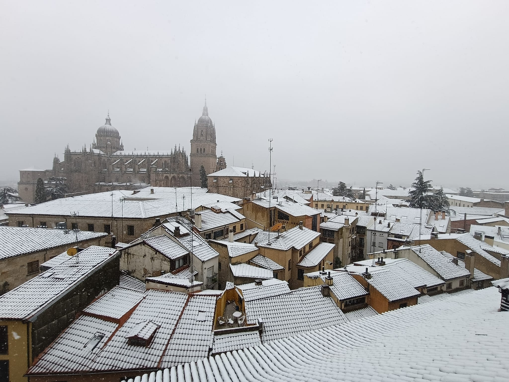 La nieve reapareció con fuerza este martes en buena parte de la provincia de Salamanca, complicando el tráfico en las principales carreteras de la provincia. La responsable es la borrasca Kristin, que empezó a descargar nieve pasadas las 6.30 horas del miércoles prácticamente en toda la provincia, incluida la ciudad del Tormes, donde también ha cuajado