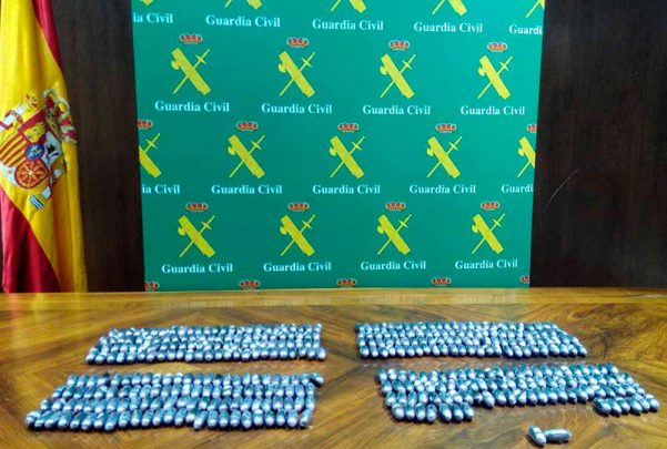 Como consecuencia de la inspección de los diversos vehículos identificados, el perro detector de drogas perteneciente al grupo cinológico de la Guardia Civil señaló de forma positiva la mochila propiedad de un varón de 28 años, natural y residente en La Coruña, como posible contenedor de sustancias estupefacientes.