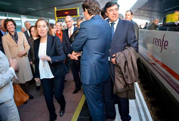 Aunque no están los trenes Talgo, «ni formados los maquinistas para cubrir este servicio», como dijo la ministra, ni el servicio se espera antes de que empiece 2016, el acto de «supervisión» de la electrificación de la línea entre Medina y Salamanca (un ramal de la alta velocidad que comunica Olmedo -Valladolid- con Zamora) casi ha sido un ‘bienvenido mister Marshall’ en la estación con la cúpula del PP local, los diputados y senadores y los consejeros de Fomento y la de Cultura (que es salmantina), además del delegado de la Junta en Salamanca.