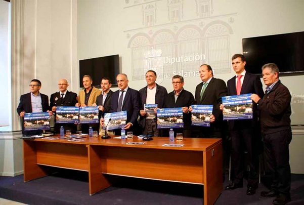 El diputado de Deportes, José María Ortiz, el delegado provincial de Atletismo, Moisés Muñoz, y los responsables de la Fundación Rodríguez Fabrés y organizadores, Juan José Peralta, Juan del Pozo, Ángel Corral y Evelio Almendra, han presentado este viernes la II Carrera Popular Fundación Vicente Rodríguez Fabrés. Se celebrará el 15 de noviembre para celebrar el centenario de la fundación.