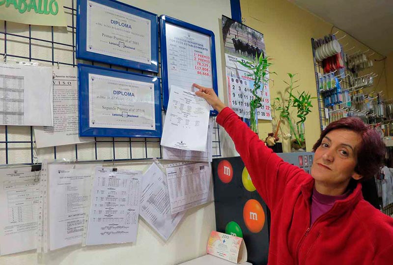 La propietaria de este punto mixto de venta, María Rosario Gómez, solo vende números por máquina, y tiene un cliente habitual que le pide siempre el mismo para el jueves y el sábado (4.978), y por fin le ha tocado.