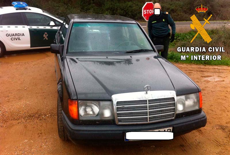 Luego huyó del lugar en un Mercedes en dirección a Ciudad Rodrigo, pero la Guardia Civil estableció rápidamente un control que permitió su detención a los diez minutos cuando circulaba por la SA-220 con dirección a Miróbriga.