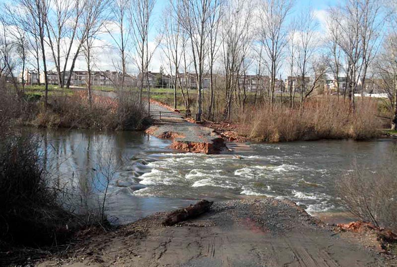 La crecida del río Tormes ha arrastrado esta semana el paso provisional de camiones para las obras en la Isla de El Soto. Una crecida originada tras únicamente tres días de lluvias continuadas y de intensidad moderada y fuerte en un otoño e invierno especialmente secos, por lo tanto el rio venía con caudales muy bajos.