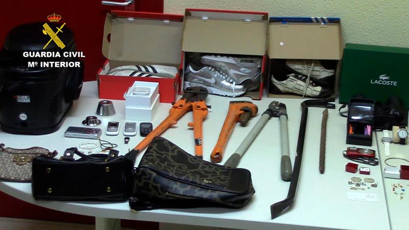 Asimismo, los miembros de la Guardia Civil efectuaron dos registros domiciliarios en la localidad de Madrid y otro en Yuncos (Toledo), recuperándose joyas, efectos y géneros susceptibles de proceder de acciones delictivas cometidas por los integrantes del grupo, además de una importante cantidad de dinero en metálico y diversas herramientas empleadas para cometer los hechos delictivos.