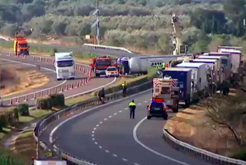 13 personas perdieron la vida este domingo en un accidente de tráfico ocurrido al volcar un autobús en la autopista A-7, en el término de Freginals (Tarragona).