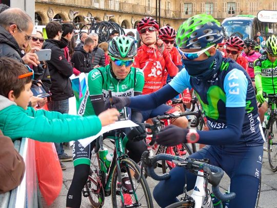 La etapa, de 151 kilómetros, discurrió entre Salamanca y Cadelario. La salida neutralizada tuvo lugar en la Plaza Mayor, donde el ciclista murciano no escatimó autógrafos a cuantos aficionados se lo solicitaron en la línea de salida.