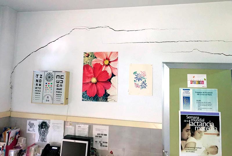 El centro presenta humedades, grandes grietas en todas las dependencias, suelos agrietados y desconchones en las paredes, entre otras deficiencias.