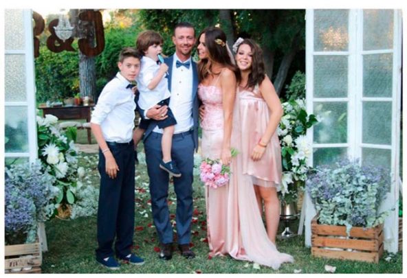 La pareja ha estado acompañada por el hijo que tienen en común, Enzo, y los dos que aporta el ex futbolista al matrimonio, Zaira y Aitor, además de otros familiares y amigos