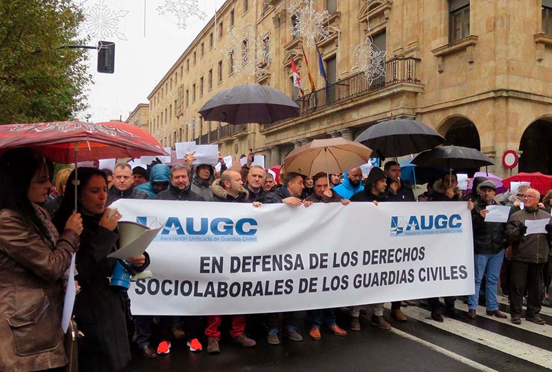 La Plataforma No+Silencio, con el apoyo de la Asociación Unificada de la Guardia Civil (AUGC) realizó este viernes una concentración frente a la Subdelegación del Gobierno para denunciar la situación que está sufriendo Javier Amaro, guardia civil destinado en el Seprona de Vitigudino.