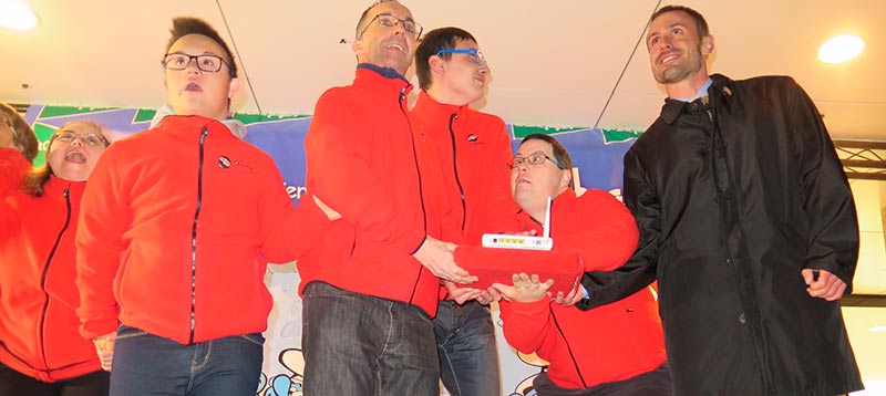 Los actores del Grupo de teatro de la Fundación Aviva fueron los encargados de apretar el botón que enciende la iluminación navideña de la fachada de El Corte Inglés