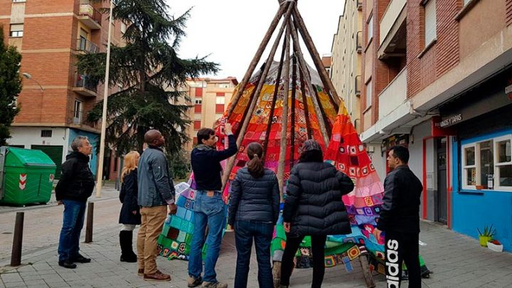 Originales y con sentido del humor. Así son los habitantes del Barrio del Oeste que haciendo un guiño maravilloso, han construido con ganchillo la típica casa de los indios americanos, el tipi.