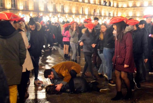 Lo peor de todo es que luego la culpa y la mala fama se la llevaran los universitarios de la universidad de Salamanca cuando posiblemente sea la minoria, la gran mayoria son personas de todas partes de España e incluso los mas probable es que ni si quieran sean universitarios que vienen como si esto fuese una fiesta de pueblo y una romeria a liarla, dejando en evidencia a la universidad de Salamanca.
