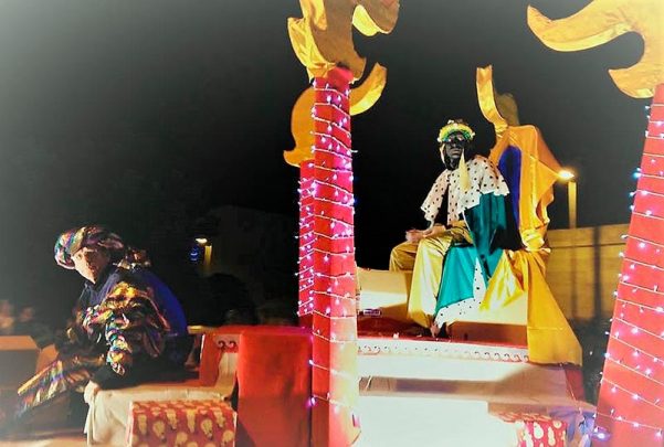 Ya por tarde-noche la cabalgata, en la cual los Reyes Magos han repartido sonrisas, saludos, ilusión y hasta 300 kg. de caramelos, acompañados por las carrozas dónde los Reyes han logrado la sonrisa de todos aquellos que esperaban su paso hasta llegar a la carpa donde, sentados en sus tronos han escuchado las peticiones de los pequeños.