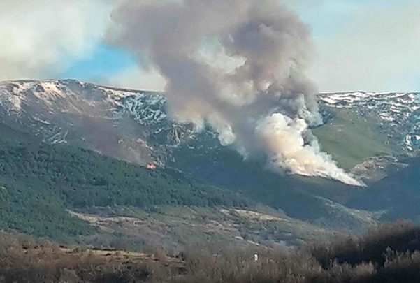 Los equipos de la lucha contra los incendios trabajan para tratar de controlar y extinguir un incendio forestal que se produjo este miércoles por la tarde cerca de Candelario.