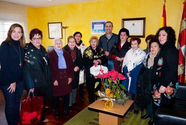 Fieles a la tradición, las mujeres de Carbajosa se han acercado este viernes al Ayuntamiento donde el alcalde, Pedro Samuel Martín, les ha cedido el bastón de mando por un día.