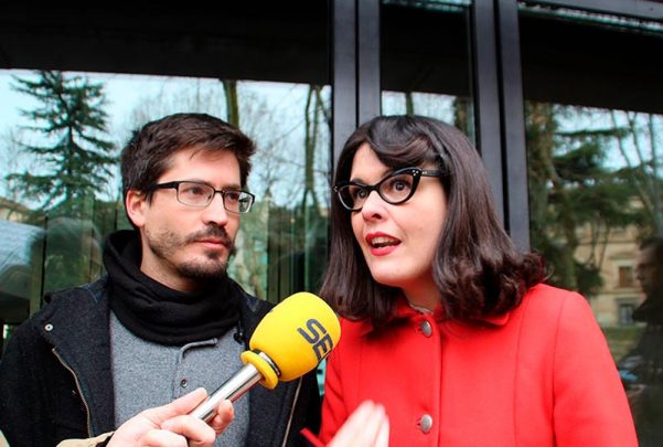 Gabriel de la Mora y Virginia Carrera han comparecido en la puerta de los juzgados de Salamanca para anunciar su interposición de dos demandas contra el PP por falta de acceso a la información municipal.