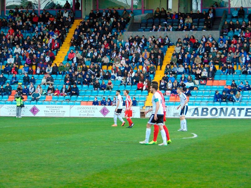 La segunda mitad fue un monólogo del CF Salmantino, aunque el dominio no acababa de traducirse en peligro. Aun así, las ocasiones empezaban a caer, algunas de ellas tras buenas combinaciones. Charly salvaba una ocasión en un córner al imponer su altura y evitar el remate zamorano y ya cerca del final una jugada de Palomi, que había entrado apenas un minuto antes, pone el balón en bandeja para que Coque pusiera la sentencia.