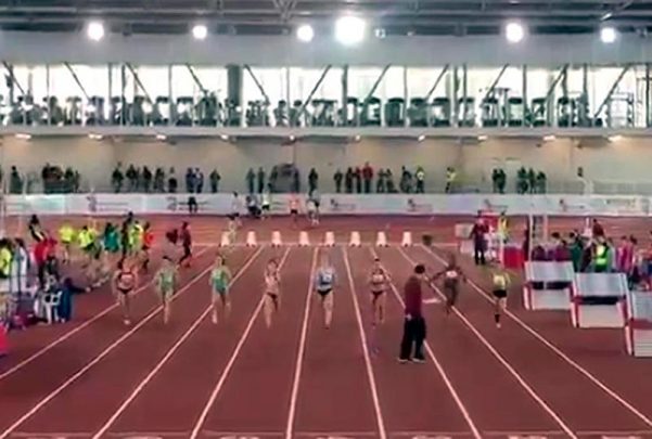 Fue en la prueba de 60 metros lisos femeninos, cuando un juez iba leyendo unos papeles y cruzó la pista por donde venían las atletas embaladas.