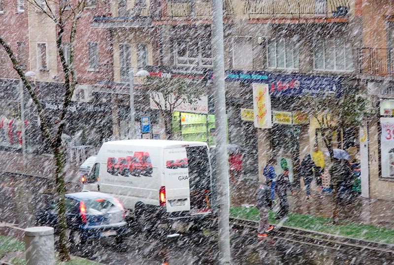 A mediodía día cayeron algunos copos, pero la nevada fuerte se produjo poco antes de las seis de la tarde y durante apenas cinco minutos.
