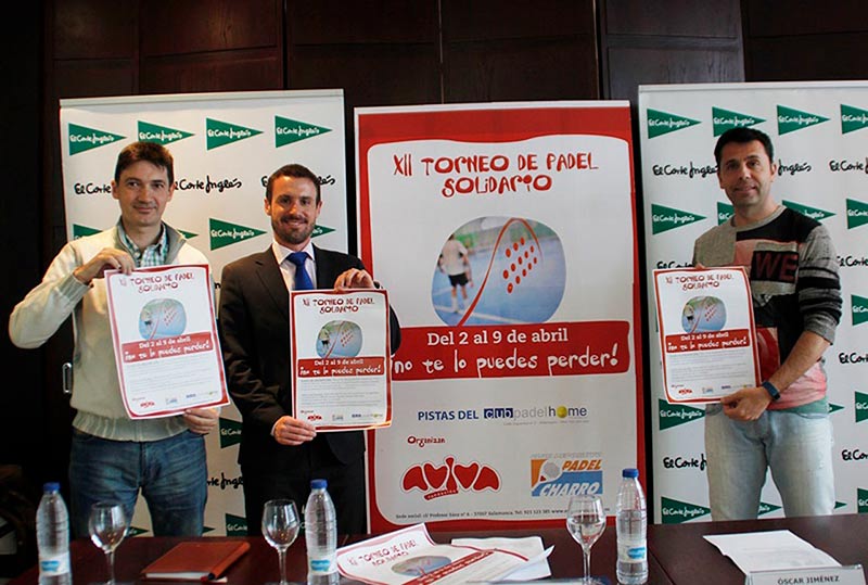 Eugenio Sánchez, representante de AVIVA, Adrián Rodríguez, responsable de comunicación de El Corte Inglés de Salamanca, y Óscar Jiménez, responsable de patrocinio de Joma, han presentado este lunes el XII Torneo de Pádel Solidario a favor de la asociación AVIVA. Tendrá lugar desde el 2 hasta el 9 de abril en el Club Pádel Home de Villamayor.