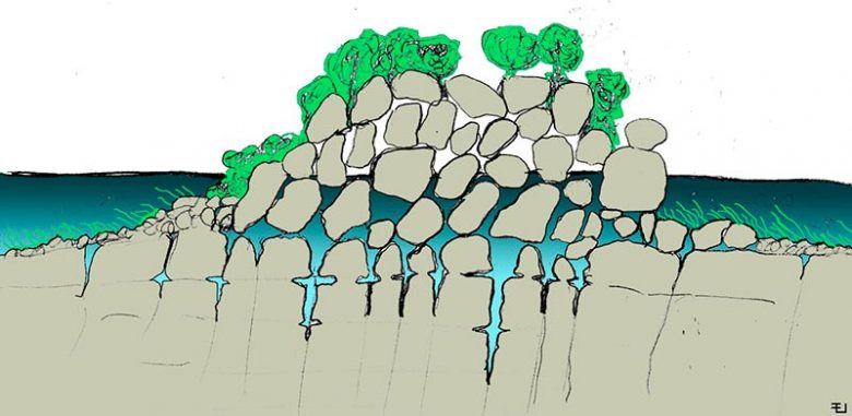 – En los tres casos que he visto el río llega a una zona de piedras caballeras que forman una barrera permeable en el fondo de un valle. Los huecos entre los bloques pétreos permiten el paso del agua sin que se estanque…