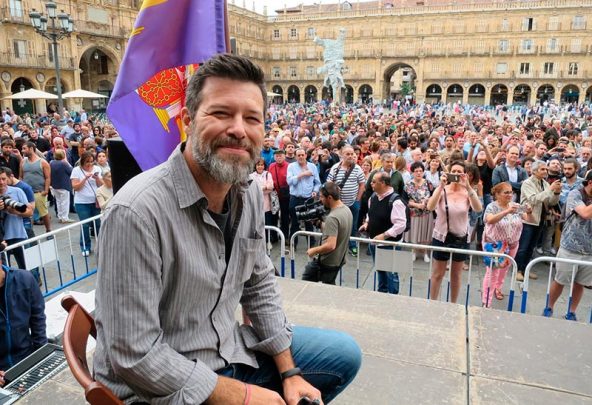Quequé, salmantino de nacimiento, cosechó un sonoro aplauso cuando aludió a que sus paisano no se merecen «que la cara de un dictador esté en la Plaza Mayor más bonita del mundo».