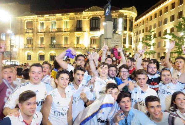 Los madridistas salmantinos volvieron a salir este sábado a la calle para celebrar un nuevo título, en esta ocasión la duodécima Champions, tras la victoria del Real Madrid por 4-1 ante la Juventus de Turín.