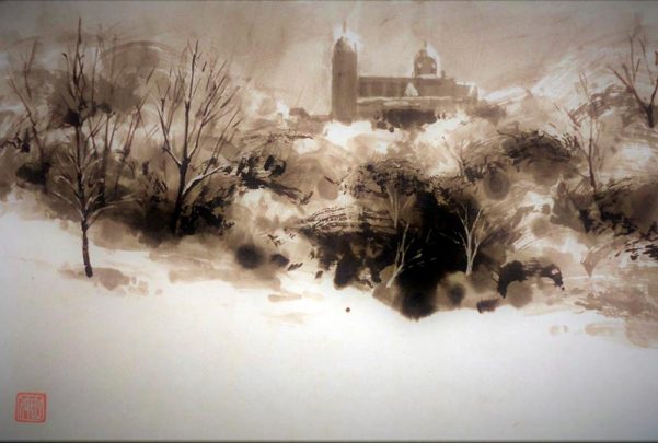 Nos deslumbra con una técnica de pintura que tiene origen en China y ha sido rebautizada por los japoneses como “sumi-e”, que significa tinta negra y pintura. Es una pintura naturalista, que nace de la filosofía taoísta, y se basa en el respeto hacia la naturaleza: se plasma en el papel todo lo que tenga vida. Es una difícil técnica que exige la interiorización de los elementos dibujados, pues no hay rectificación posible.