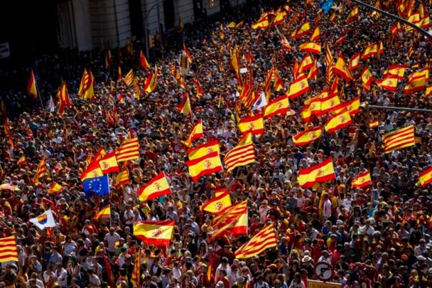 Esta gran marea roja y amarilla salta a la calle dos días después de que el Gobierno aplicase el artículo 155, asumiese el control de la Generalitat y convocase elecciones autonómicas para el 21 de diciembre.