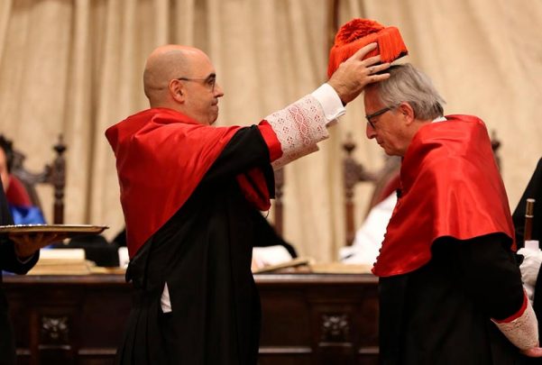 El Claustro de Doctores aprobó el pasado 11 de julio la concesión de los doctorados honoris causa por la Universidad de Salamanca a Juncker, por su papel fundamental en el proceso de integración europea, “ya que ha presidido la UE en uno de los momentos más difíciles desde su creación y ha estado al frente del Consejo Europeo en dos ocasiones”; y a Marín, por su compromiso para poner en marcha el programa Erasmus “en un momento en el que existía una importante resistencia por parte de alguno de los países miembros de la Unión Europea”.