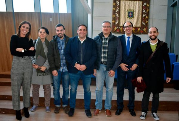 Mariano González, jefe de Producción de Castilla y León de Aqualia; Marta Casao, responsable de Depuración; Rubén Fernández, director de la planta de Guijuelo y Francisco Javier García Linares, jefe del Servicio Municipal de Aguas junto a los expertos en tratamiento de residuos, Cristina Barriga y Roberto Giralda presentaron esta semana al alcalde, Francisco Julián Ramos, un proyecto basado en una economía circular dirigida a aprovechar el 100% de los residuos que se generan en los procesos productivos de la industria agroalimentaria para darles nuevos usos y lograr así la máxima sostenibilidad y eficiencia del uso de los recursos.