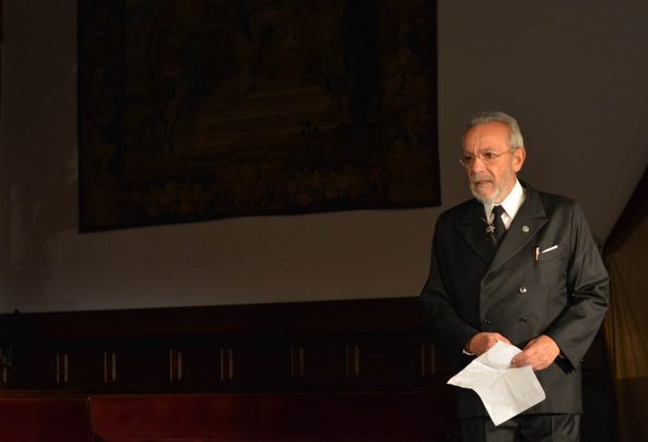 El director de la Oficina del VIII Centenario Salamanca 2018, Julio Cordero, participó este miércoles en la presentación de ‘Unamuno: venceréis pero no convenceréis’, el estreno, previsto para el próximo 14 de febrero, con el que Teatro de La Abadía celebra su XXIII aniversario y los ocho siglos de historia de la Universidad de Salamanca. La obra llegará al Teatro Liceo los días 5 y 6 de octubre.