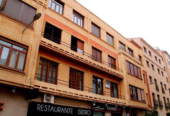 El edificio data de principios de los años 30. Marcelino Diego explicó que “mi abuelo compró el solar. Antiguamente había una posada que se llamaba Posada La Cadena que invadía toda la calle; se llegó a un acuerdo por el cual, para construir todo el edificio, debía de ceder parte del terreno para que se pudiera comunicar la Plaza de Santa Eulalia con la Plaza del Mercado. En un principio, iba a estar destinado a hotel, el Hotel Comercio, que antiguamente se encontraba donde está el Banco de España, pero, con el estallido de la Guerra Civil, al final se transformó en un edificio de viviendas”.