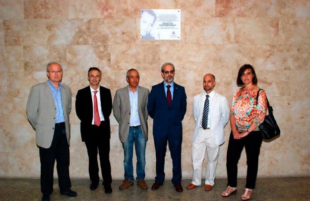 Al acto de descubrimiento de la placa conmemorativa celebrado en la mañana de hoy, con el que se da cumplimiento al acuerdo adoptado por el Consejo de Gobierno de la institución académica del 27 de marzo de 2014, han asistido el rector Daniel Hernández Ruipérez, acompañado por los decanos de Ciencias Sociales, José Manuel del Barrio Aliste; Economía y Empresa, Javier González Benito; y Derecho, Ricardo Rivero Ortega, y la vicedecana de Filosofía, Patrocinio Gil Aparicio.