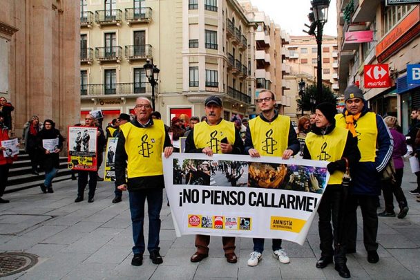 “Hoy se cumple el tercer aniversario de la presentación de esta ley, la Ley Orgánica de Seguridad Ciudadana”, explicó Juan Luis Hernández, coordinador de Amnistía Internacional en Salamanca, “es una ley que, entre otras cosas, coarta el derecho de manifestación, el derecho de opinión, el derecho de reunión pacífica, atenta también contra los derechos de las mujeres prostitutas, penaliza a los migrantes y solicitantes de asilo…”.