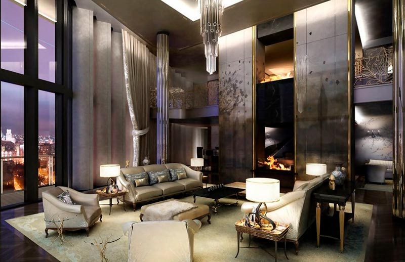 Dispone de una superficie de 1.500 metros cuadrados distribuidos en dos plantas. En total, cuenta con seis dormitorios y un amplio salón con vistas panorámicas por encima del mundo y servicio de habitaciones de 24 horas que presta un exclusivo hotel de la zona, además de todo tipo de comodidades. Eso sí, el precio no incluye los muebles.