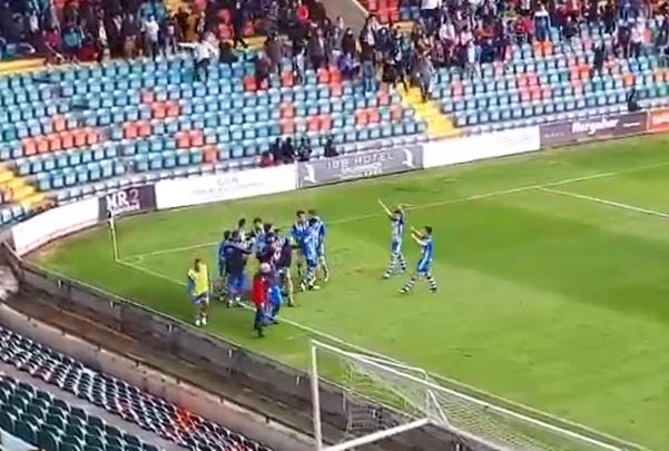 Tal fue el impacto y lo desagradable del momento que el árbitro reflejó en el acta este comportamiento. “En el minuto 88, tras la consecución del gol visitante, aficionados del club local, identificados como tal por su indumentaria y sus cánticos y que se encontraban en la grada de fondo detrás de esa portería corearon en repetidas ocasiones “jugadores violadores”, hasta que el juego fue reanudado”.