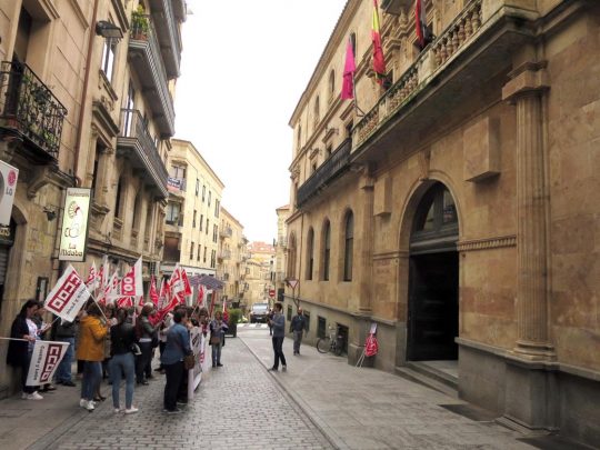 Concretamente, con sendas concentraciones ante la Diputación Provincial y el Ayuntamiento, que son quienes licitan estos servicios públicos para que los preste una empresa privada, en este caso Azvase.