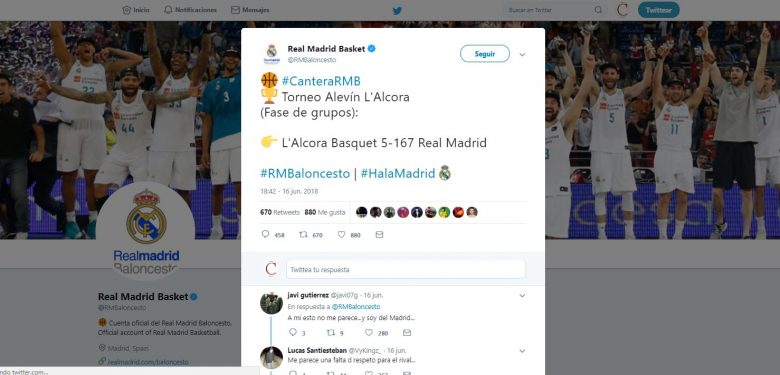 Las cosas se agravaron cuando la cuenta de Twitter del real Madrid e baloncesto publicó el resultado del partido, lo cual recibió numerosas críticas de los internautas.