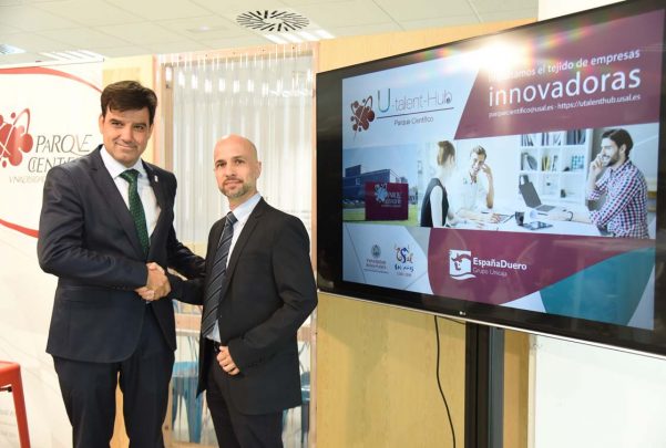 Mediante este acuerdo, un año más EspañaDuero, a través del patrocinio “Global U-Talent-Hub Oro”, manifiesta su compromiso con la dinamización del tejido empresarial local, favoreciendo la realización de actividades orientadas al fomento y apoyo del emprendimiento y el desarrollo de proyectos innovadores en el entorno del Parque Científico de la Universidad de Salamanca.
