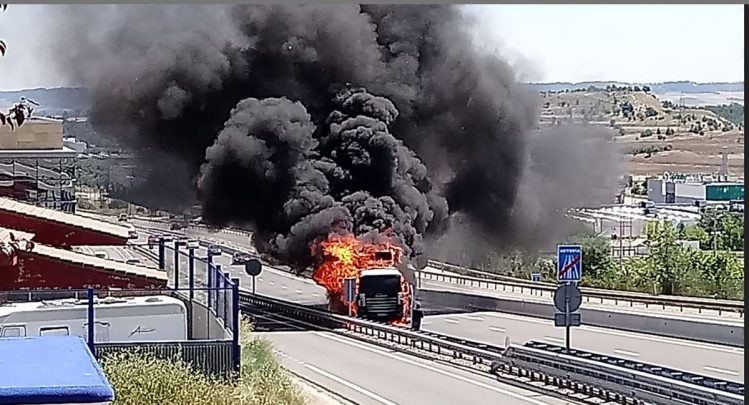 El incendio de un camión que transportaba palés de madera en la A-60, a la altura del polígono industrial de Zaratán (Valladolid), obligó este mediodía a intervenir a los bomberos de Valladolid, que recibieron el aviso minutos antes de las 14 horas.