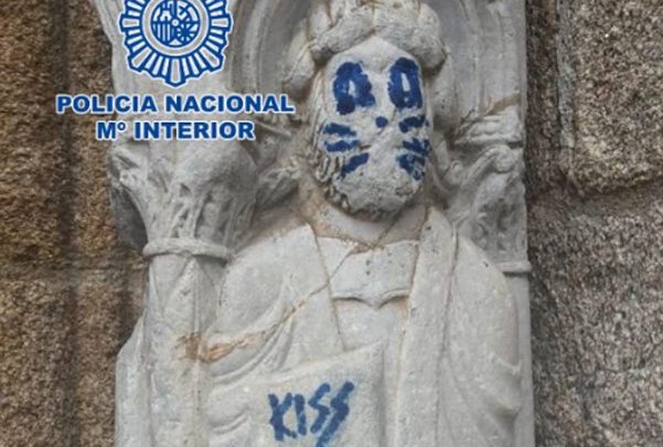 Pocos días después de abrir al público el famoso Pórtico de la Gloria de la catedral de Santiago de Compostela, el seo gallego ha aparecido este lunes con un grafiti en una de las figuras de la fachada de Platerías. Identifican la pintada como una imitación del reconocido maquillaje que lleva uno de los miembros de la banda Kiss.