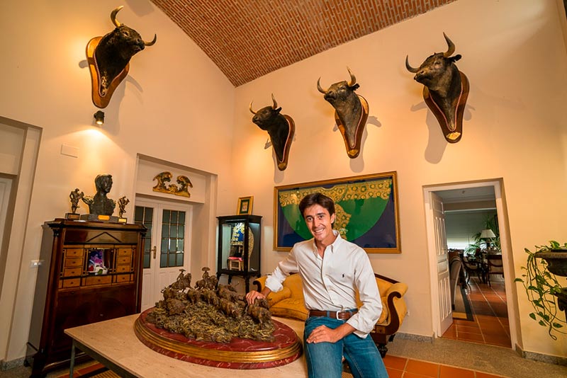 El torero se encuentra en la finca familiar ‘Espino’ en Salamanca. Allí, se respira el toro. Hay pinturas, esculturas, trajes de luces, capotes y fuera braman los toros de la ganadería familiar que pastan tranquilamente en la dehesa.