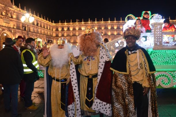 Fue una hora y media de recorrido desde La Alamedilla y hasta que los magos de oriente llegaran a la Plaza Mayor para bajarse de sus carrozas y saludar a los salmantinos que los esperaban en la Plaza.