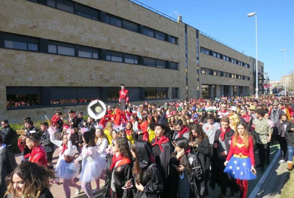 A las 10.30 estaban citados en el campus Unamuno, junto a la facultad de Derecho para inscribirse en el concurso de disfraces (los raros son los que van a estos saraos sin disfrazarse), comprar los tiques para la fiesta en un conocido pub, paseo por las dependencias de la facultad con la charanga a tope y por la tarde, fiesta en las discotecas de moda.