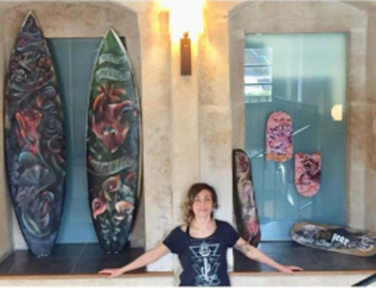 Se dedicó con devoción al tatuaje artístico durante muchos años. Esto la llevó a vivir en Ibiza y más tarde en St Ives, Cornwell, Reino Unido. Allí descubrió su otra pasión, el surf.