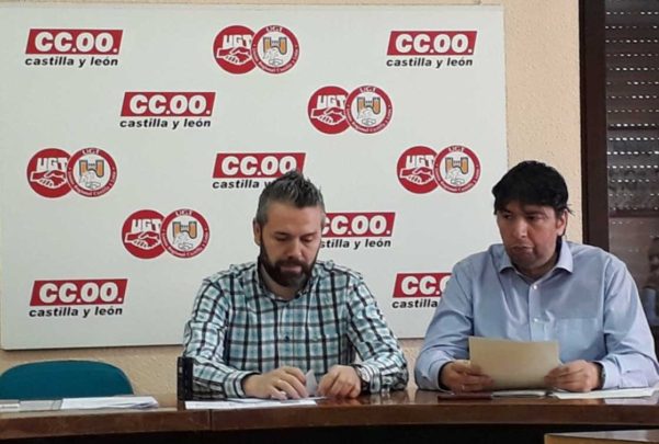 El secretario de política sindical, industrial y empleo de UGT-CyL, Raúl Santa Eufemia, junto con el secretario de Acción Sindical de CCOO en Salamanca, José A. Gallego Alejendre, se han reunido hoy para informar sobre la negociación colectiva de contratos y la situación sobre el SMI en el año 2019.